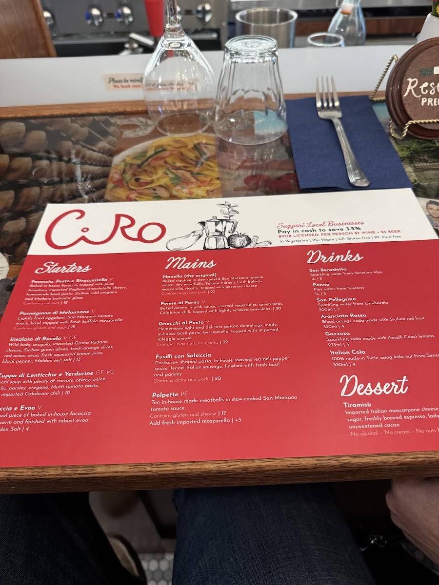 Ciro Oak Park Menu